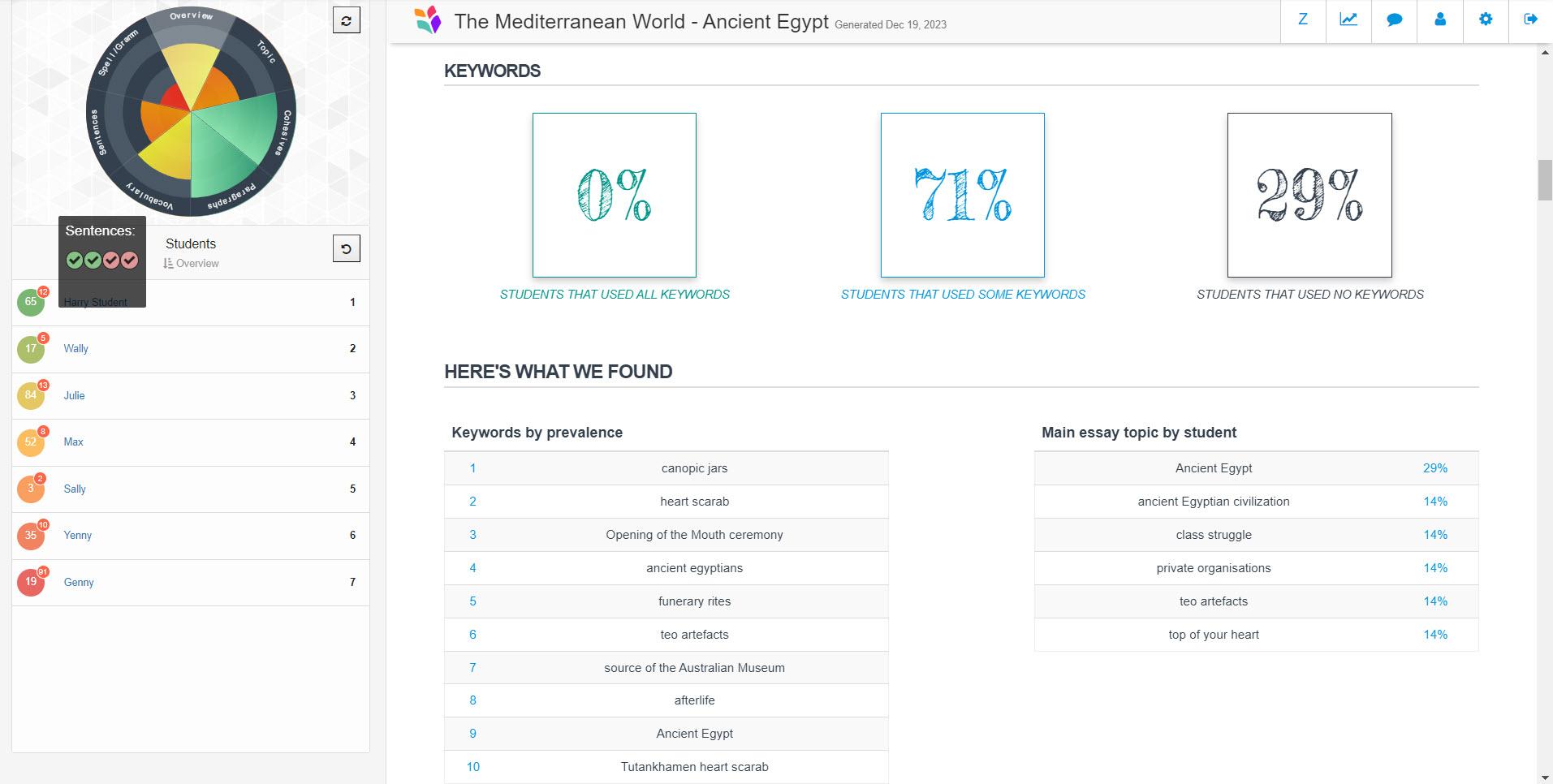 Scribo grades a class of student texts in under 30 seconds and of course teachers can fine tune the results if needed. The data collected is full of insights, helping teachers build a roadmap of where they see their focus being applied.