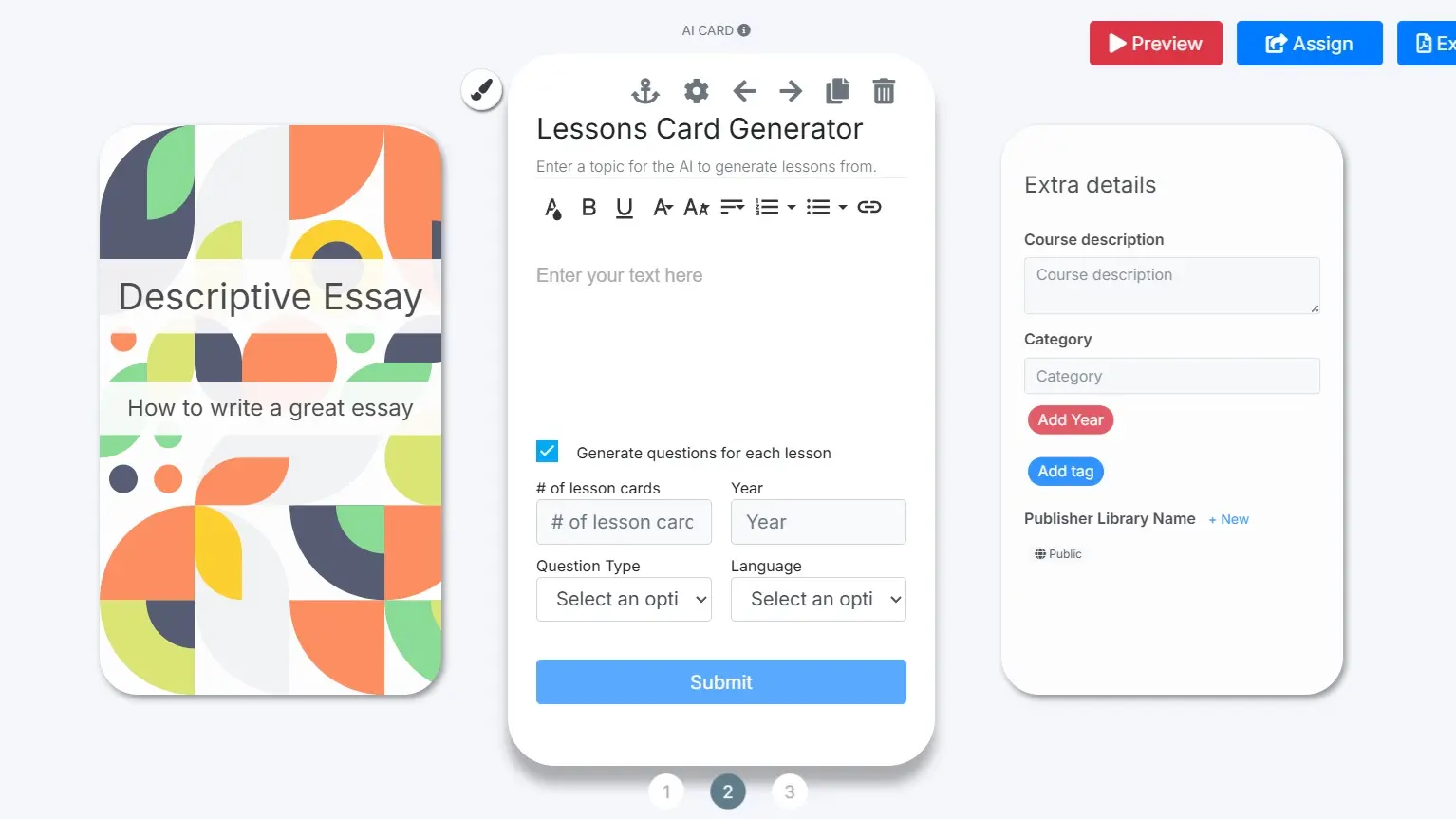 Scribo Micro leverages AI to create and deliver all types of classroom content in seconds. Create lessons and courses with a range of modalities to support content and assessment for any subject. For a start, the app provides a series of content templates via a beautiful card-based delivery. It takes care of the entire lesson presentation and delivery, so that teachers spend less time on presentation and more time on engagement.