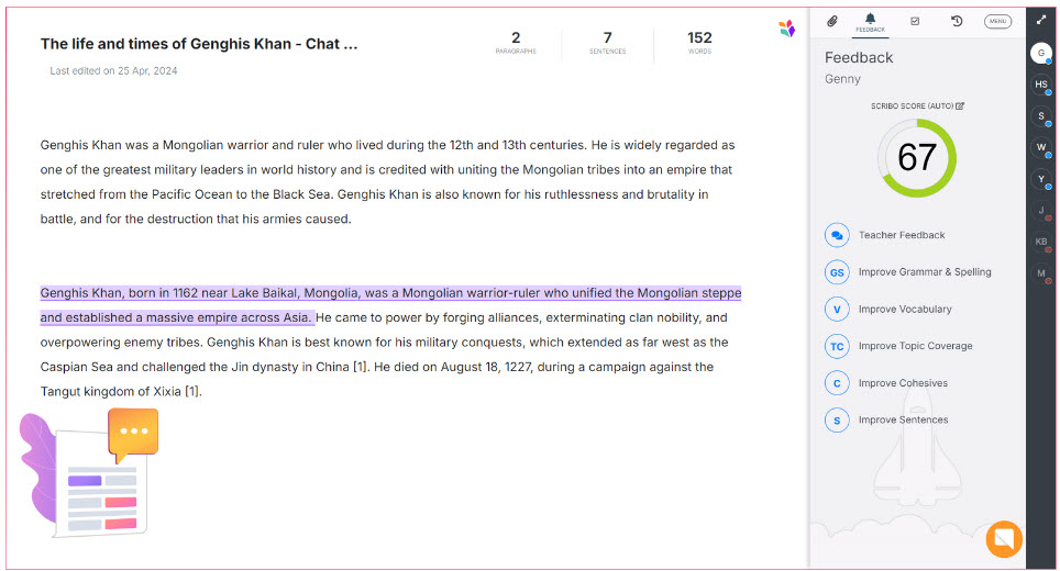 We believe AI can only be useful in teaching and learning when teachers use it to amplify pedagogy and targeted student support. Scribo helps teachers streamline workflow and drive student engagement by giving teachers the Human Interface into AI possibilities. Scribo Plus is: