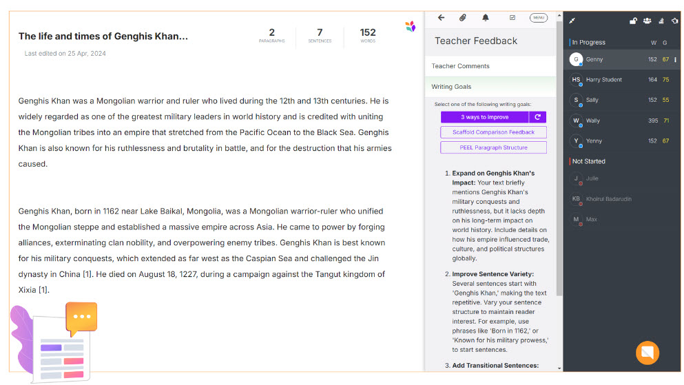 - All teacher feedback is in one place, making it easier to find and follow for everyone
