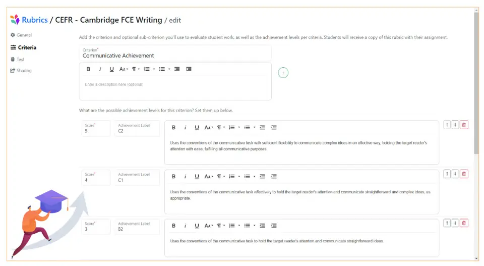 - There are over 20 international rubrics supported, from IELTS to CEFR and TOEFL by default