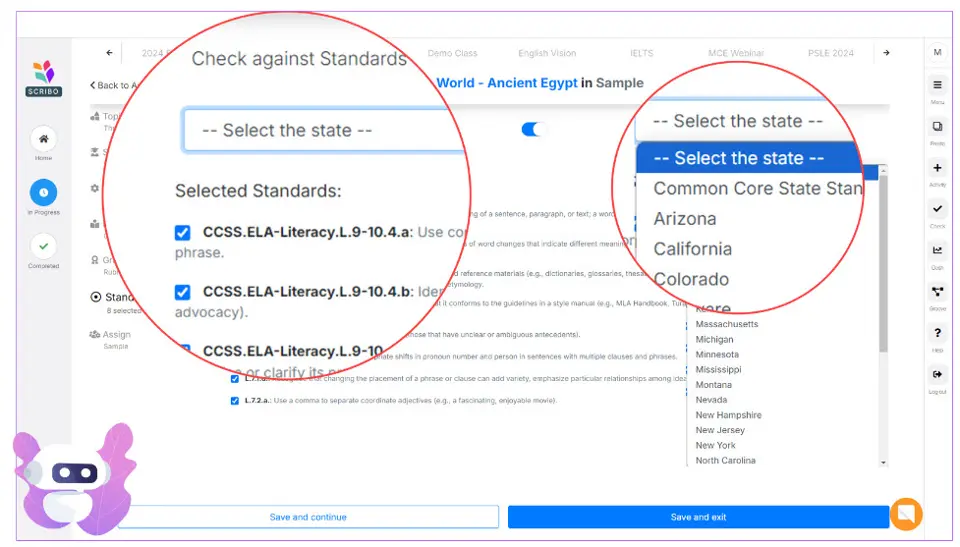 Scribo contains a library of every State Standard for the US and curriculum standards for Australia, Ontario Canada, Philippines and Indonesia. We load standards from any country.